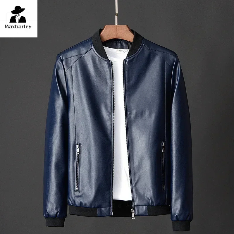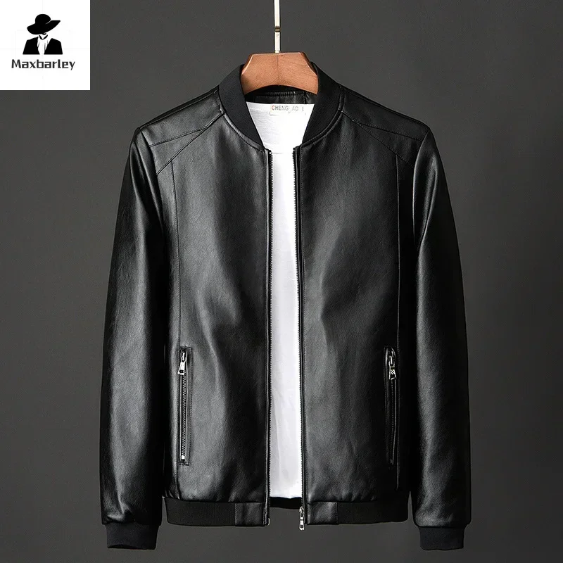 New Men Black Biker PU Leather Coat Pu Leather Jacket