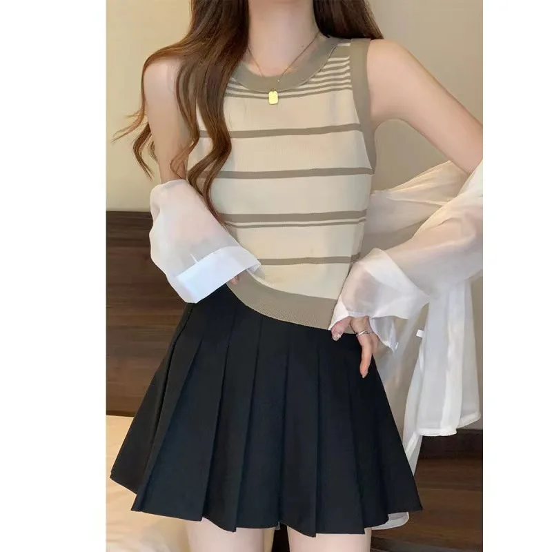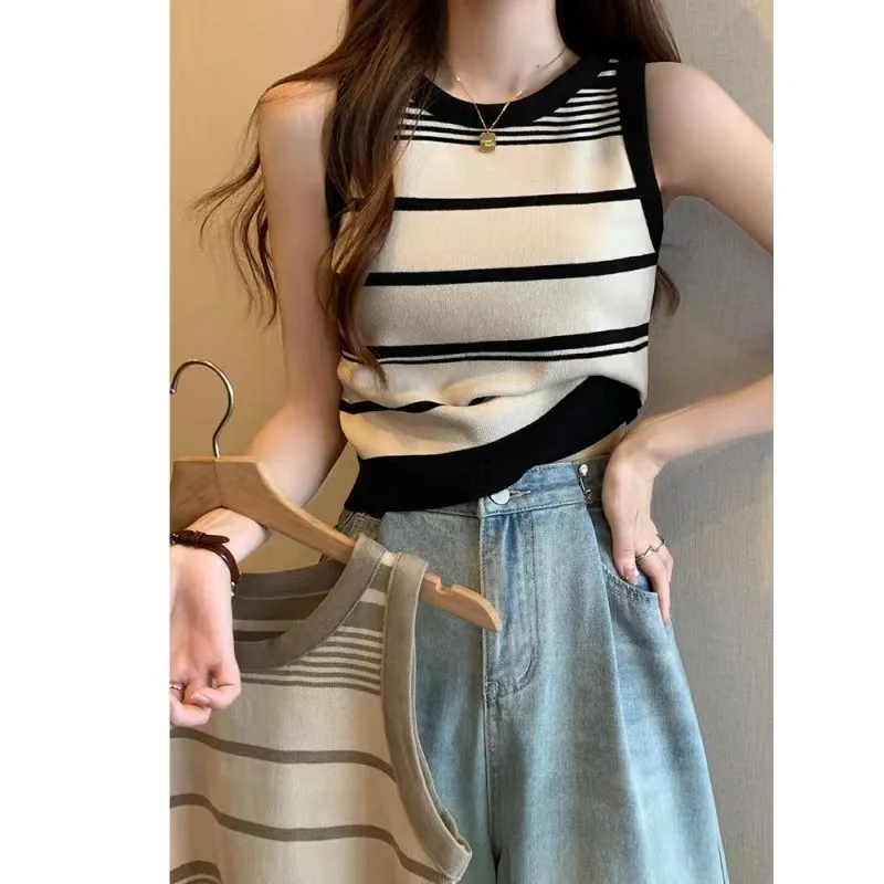Hign-concerned Chemical: none Release Date: Summer 2024 Season: Spring/Summer Style: Casual Pattern Type: Striped Clothing Length: short(4-16inch) Decoration: none Tops Type: TANK TOPS Fabric Type: Knitted Material: POLYESTER Gender: WOMEN