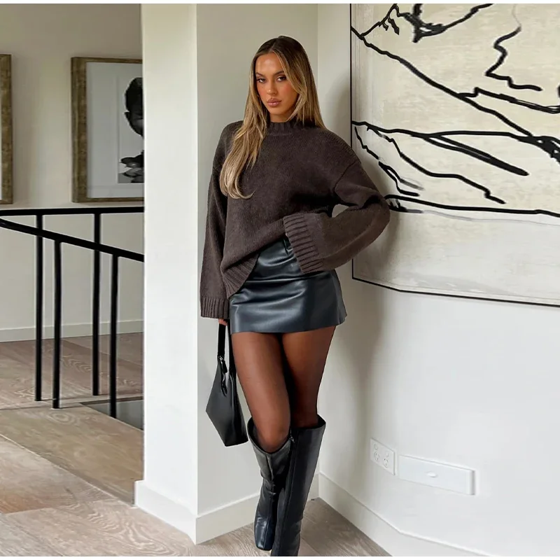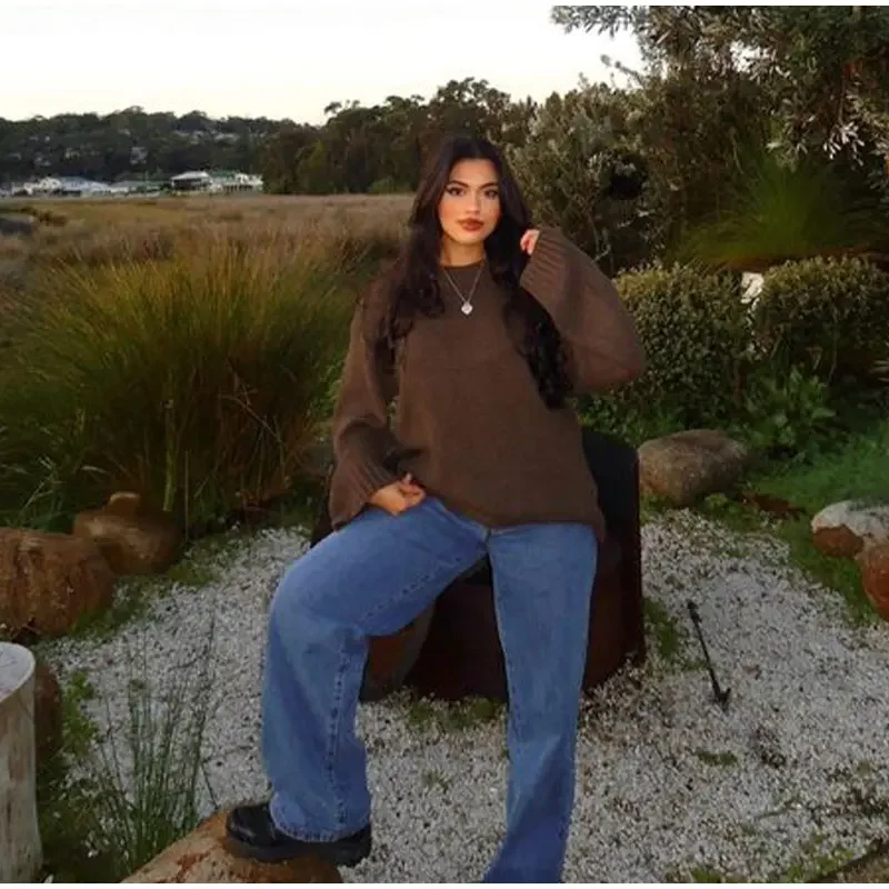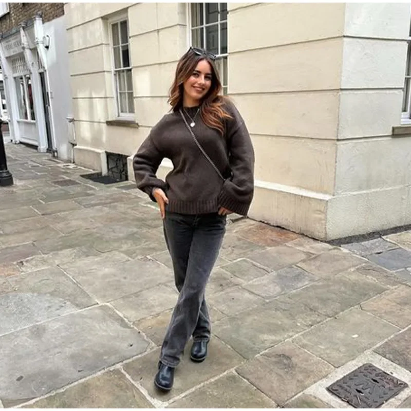 - Model Number:Â Fashion Brown Round Neck Knitted Sweaters