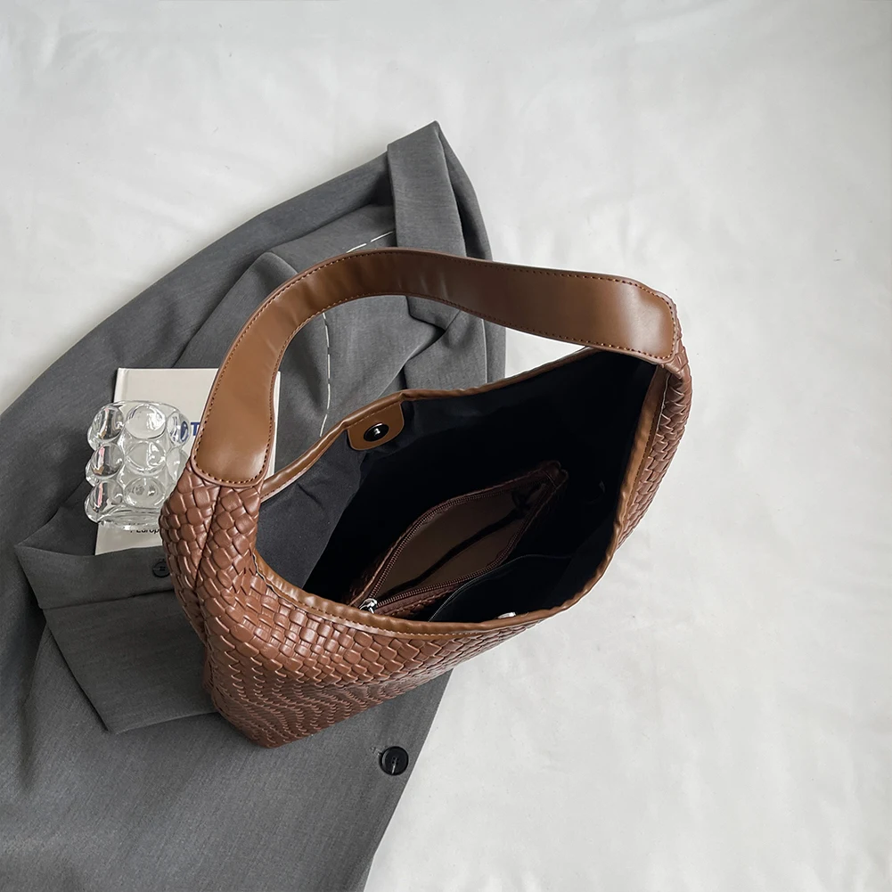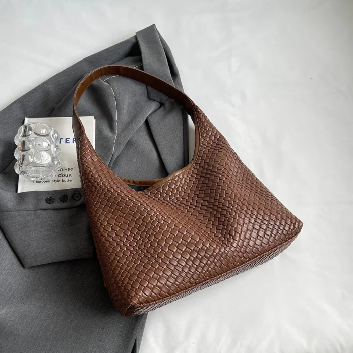 Be the first to review “Women Large Shoulder Bag with Pouch PU Woven Tote Leather Armpit Handbag” Cancel reply
